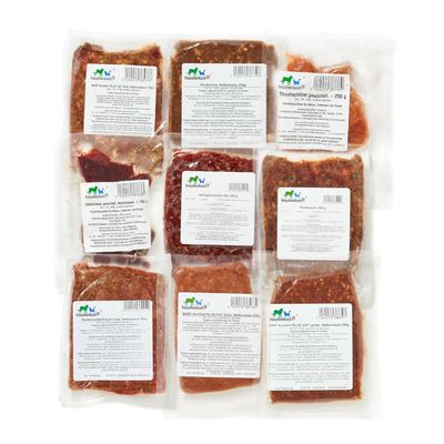 - Welche Art von Futter soll es sein?Sie können alle Rohzutaten selbst beschaffen und zubereiten oder fertige Menüs als Frostfutter bestellen. Auch eine Mischung ist möglich. Sie können z. B. gefrorene Fleischmischungen und selbst besorgtes Gemüse kombinieren.