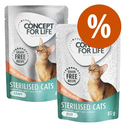 Gemischtes Sparpaket 24 x 85 g (12 x 85 g Gelee & 12 x 85 g Soße) getreidefreies Katzennassfutter von Concept for Life zum dauerhaft günstigen Sparpreis!