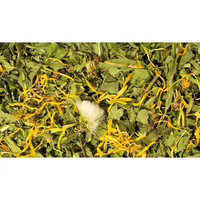 - Farbenfrohe, rohfaserreiche Mischung aus Löwenzahn und Ringelblume
