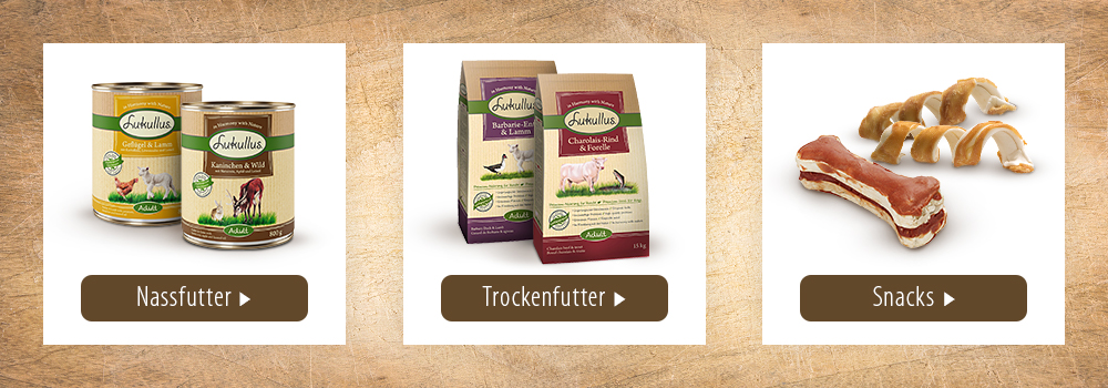 Lukullus feine Naturkost besteht aus liebevoll ausgesuchten Zutaten, wie selbst zubereitet! Ausgewähltes Fleisch in Kombination mit viel Gemüse und Obst verleihen den Menüs einen besonders frischen Geschmack und liefern natürliche Vitamine. Die Abrundung mit hochwertigen Ölen sorgt für ein glänzendes Fell und gesunde Haut, da sie natürlich reich an Omega-3- und Omega-6-Fettsäuren sind. Eine schonende Herstellung - bei der Trockennahrung "Kaltpressung" - sichern den Erhalt der nativen Inhaltstoffe. Menu Gustico: Nassfutter aus Rohstoffen in Lebenmittelqualität, jetzt neue getreidefreie Sorten. Mehr zur Markenphilosophie und dem Ernährungskonzept von Lukullus finden Sie HIER.